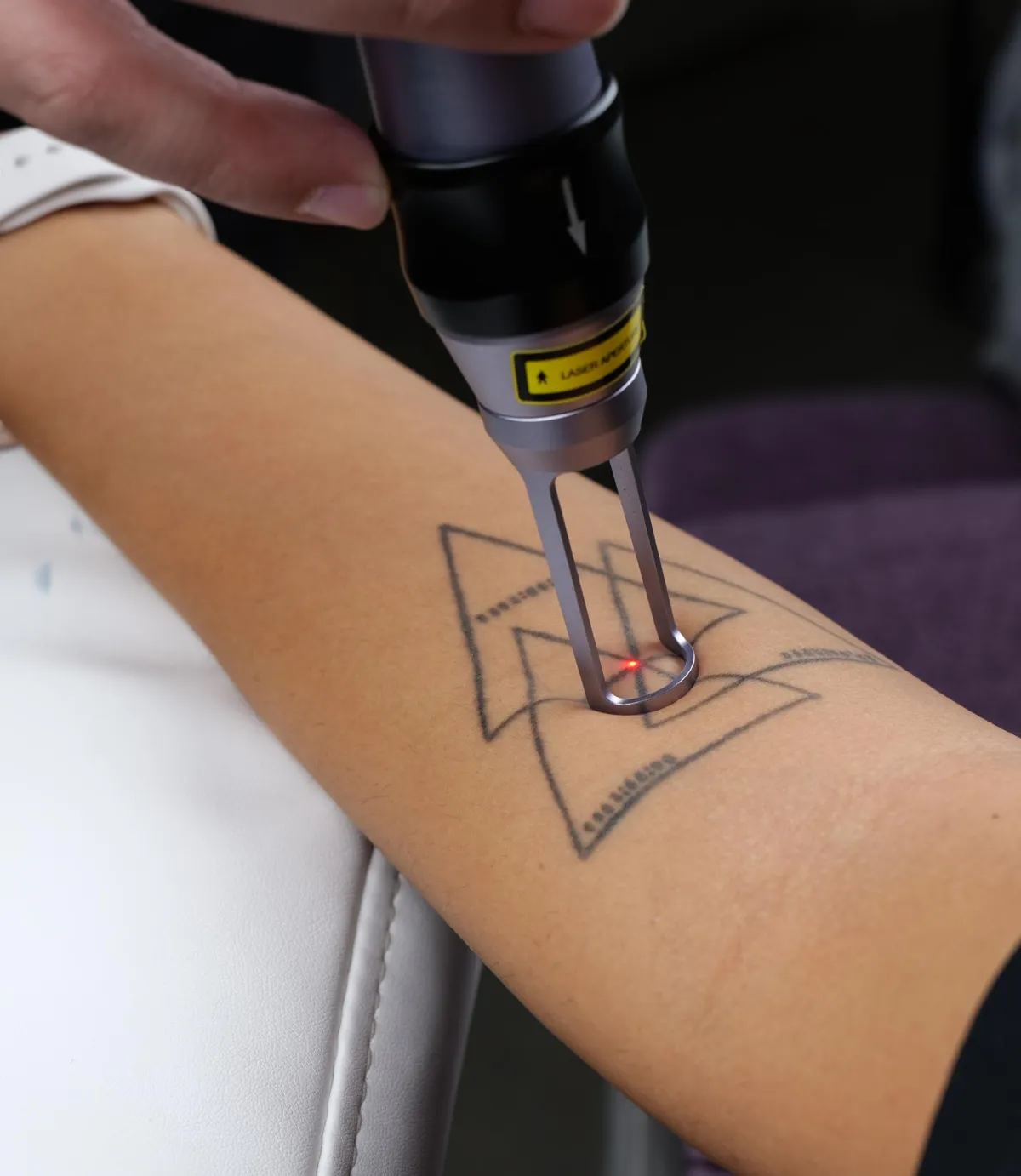 Lasern bryter ner tatueringspigmentet i små partiklar som kroppen sedan naturligt transporterar bort.